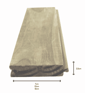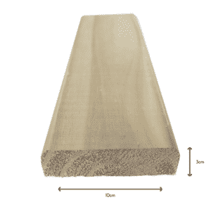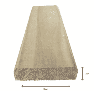 Deck de madeira de pinus abaulado e isso em uma das faces, e com quina viva na outra, 10cm de largura, 3 cm de espessura e 3,00 metros de comprimento.